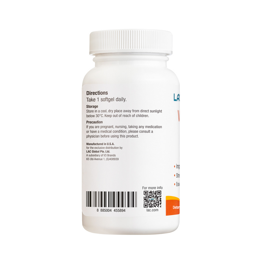 LAC Vitamin D3 1000 IU is formulated to support bone, muscle, and immune health. Vitamin D3 helps support calcium absorption. Regular use promotes overall wellness. Suitable for adults.