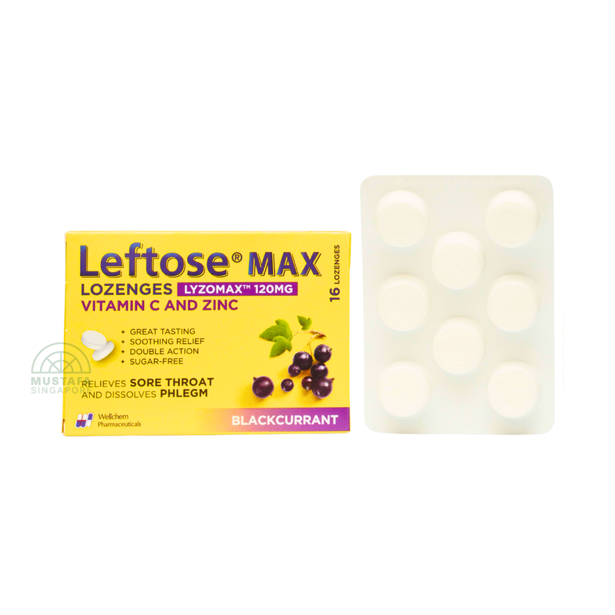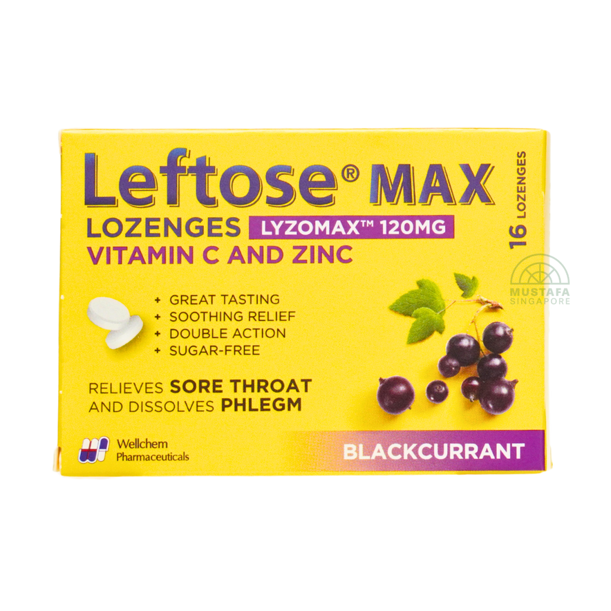 Leftose Max Blackcurrant Lozenges Vitamin C and Zinc Lyzomax 16 Lozenges 120mg