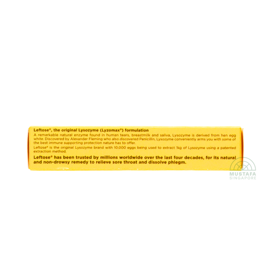 Lyzomax 90 mg Honey Lemon Lozenges provide effective relief for sore throats with the natural enzyme lysozyme hydrochloride derived from egg white. These lozenges soothe irritation and help dissolve phlegm, making them suitable for adults and children.