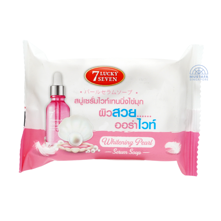 Lucky Seven Whitening Pearl Serum Soap is formulated with pearl extract for a smooth and refreshing cleanse. The gentle lather helps remove impurities while leaving skin feeling soft. Suitable for daily face and body cleansing. A refined soap inspired by skincare rituals.