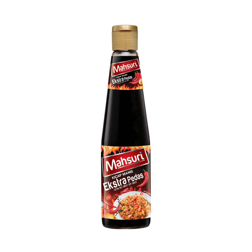 Mahsuri Kicap Manis Ekstra Pedas (Extra Hot Sweet Sauce) combines the sweetness of caramelized soy sauce with a fiery chili kick. Ideal for dipping, marinades, or stir-fried dishes that need extra heat.