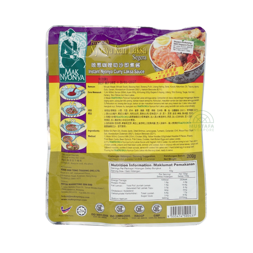 Chili, Lemongrass, Garlic, Shallots, Coconut Milk, Spices, Salt, Sugar.