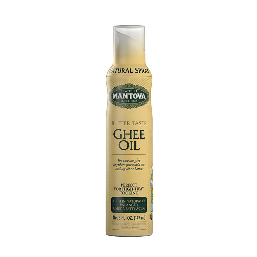 Mantova Butter Taste Ghee Oil Spray (147ml) offers the rich, buttery flavour of ghee in a convenient, natural spray form. Perfect for everyday cooking, it combines the goodness of clarified butter with easy application for greasing, sautéing, and finishing dishes without excess oil.