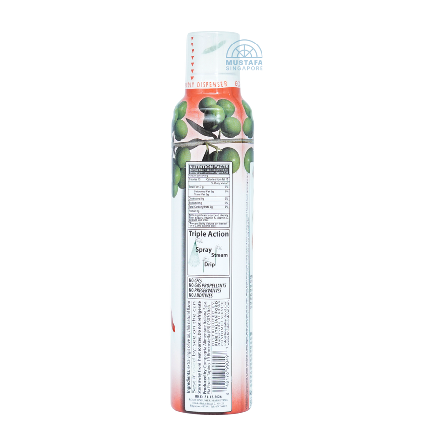 Mantova Chilli Flavoured EVOO Spray (227ml) combines the smoothness of extra virgin olive oil with the bold heat of chilli, bringing spice and richness to your favourite dishes.