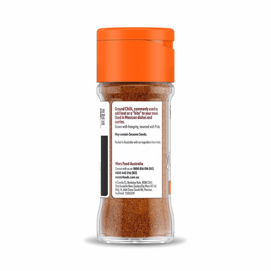 MasterFoods Chilli Ground provides intense heat and vibrant colour to your favourite curries, stir-fries, and sauces. Ideal for spice lovers.