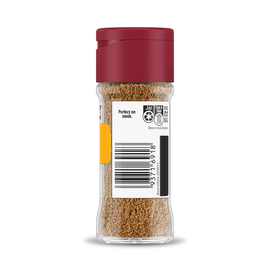MasterFoods Steak Seasoning blends cracked black pepper, garlic, and aromatic herbs to bring out the best in grilled or pan-seared steaks.