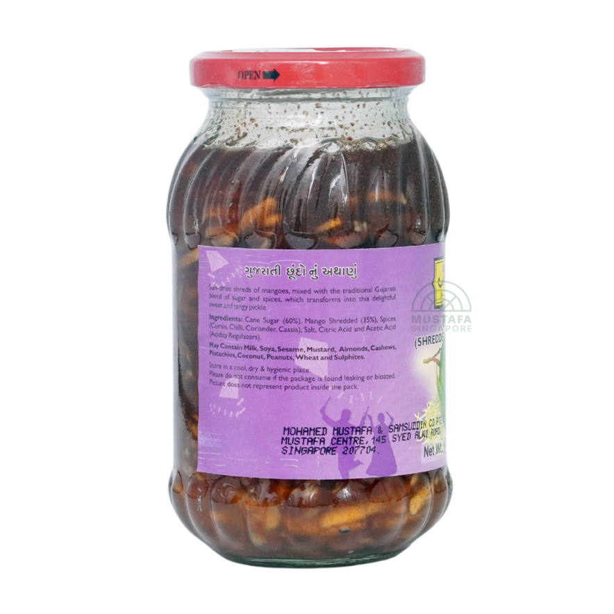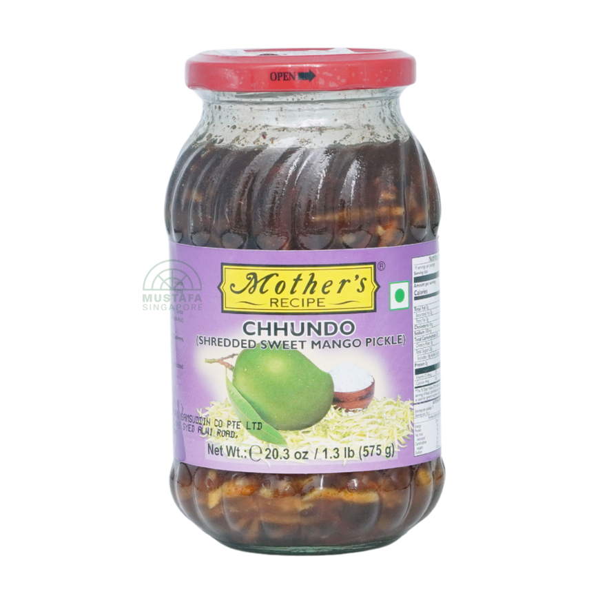 Mother's Recipe Chhundo 575g is a sweet mango pickle made from shredded mangoes, sugar, and traditional spices, perfect for a delightful sweet and tangy taste.