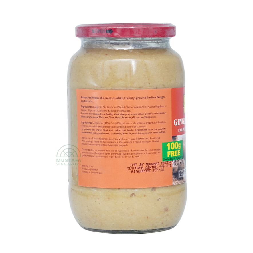 Mother's Recipe Ginger & Garlic Paste 1.1kg combines the robust flavors of ginger and garlic with a complimentary 100g free pack, perfect for high-volume cooking and commercial use.