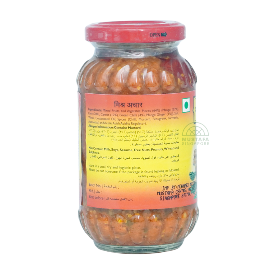 Mother's Recipe Mixed Pickle 300g combines a variety of vegetables and fruits with traditional spices, delivering a bold and flavorful accompaniment for Indian meals.