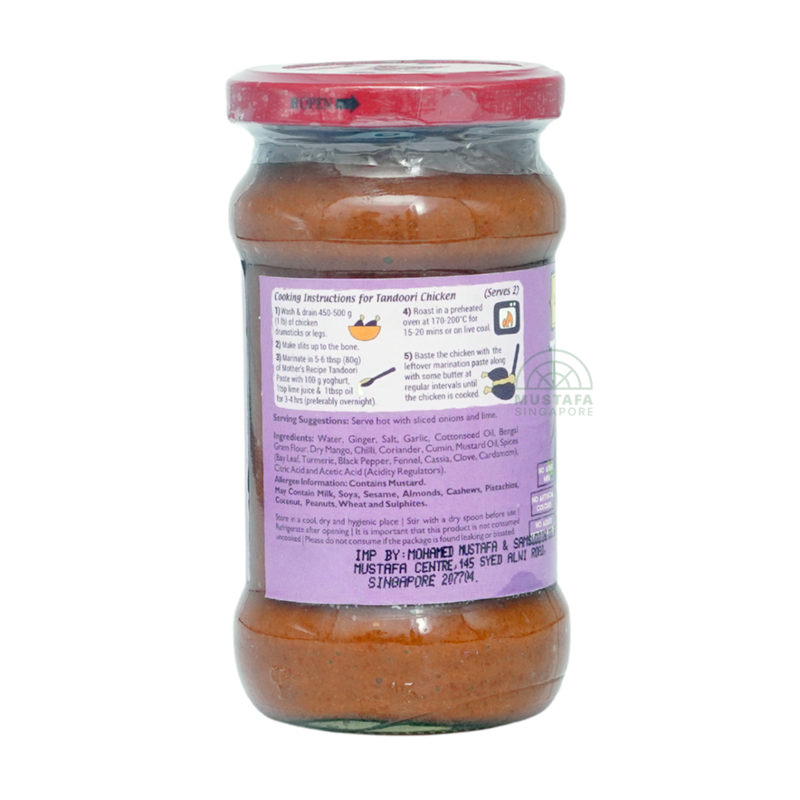 Mother's Recipe Tandoori Marinate Paste 300g combines aromatic spices for rich, authentic tandoori flavor, perfect for marinating meats and paneer.