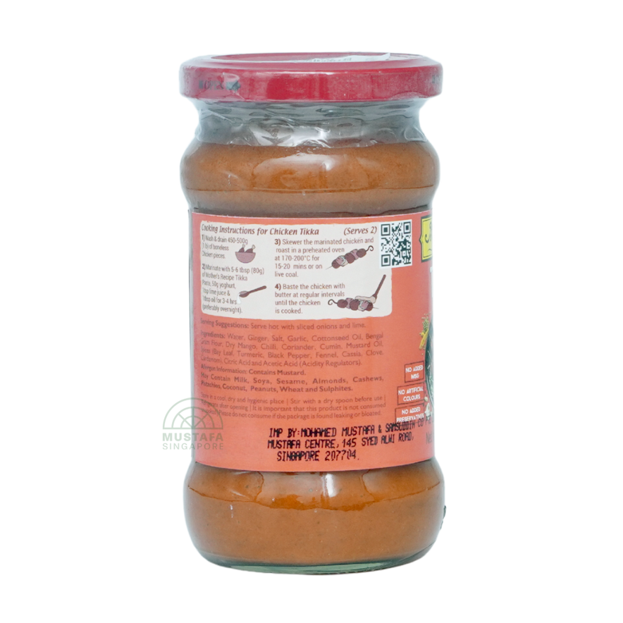 Mother's Recipe Tikka Marinate Paste 300g is a rich spice blend designed to create restaurant-style chicken tikka, paneer tikka, or vegetable tikka at home.