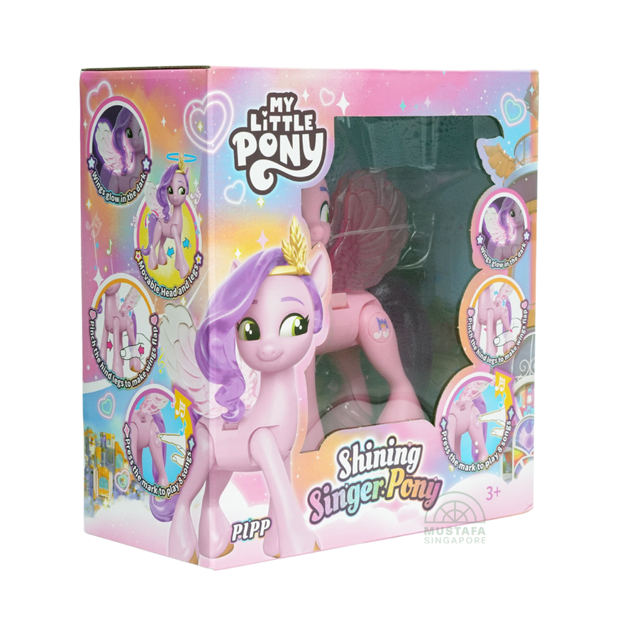 The My Little Pony Shinging Singer Pony Pipp figure brings musical magic to imaginative playtime. With character-inspired styling and vibrant colours, children can reenact scenes and create their own pony stories. The singing feature adds excitement, encouraging creativity and musical exploration. A wonderful addition for fans of the My Little Pony universe.