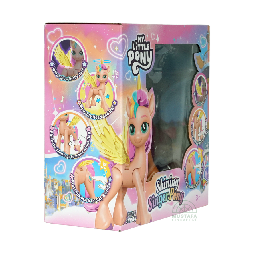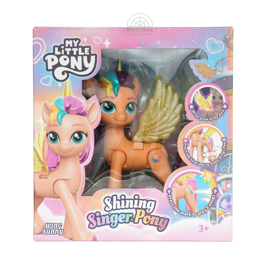 The My Little Pony Shining Singer Pony Wing Sunny toy brings music and magic together through singing features and character-themed play. Children can enjoy voice, melody and interactive movements as they explore storytelling. The vibrant colours and detailed sculpting enhance imaginative playtime. A perfect musical companion for My Little Pony fans.