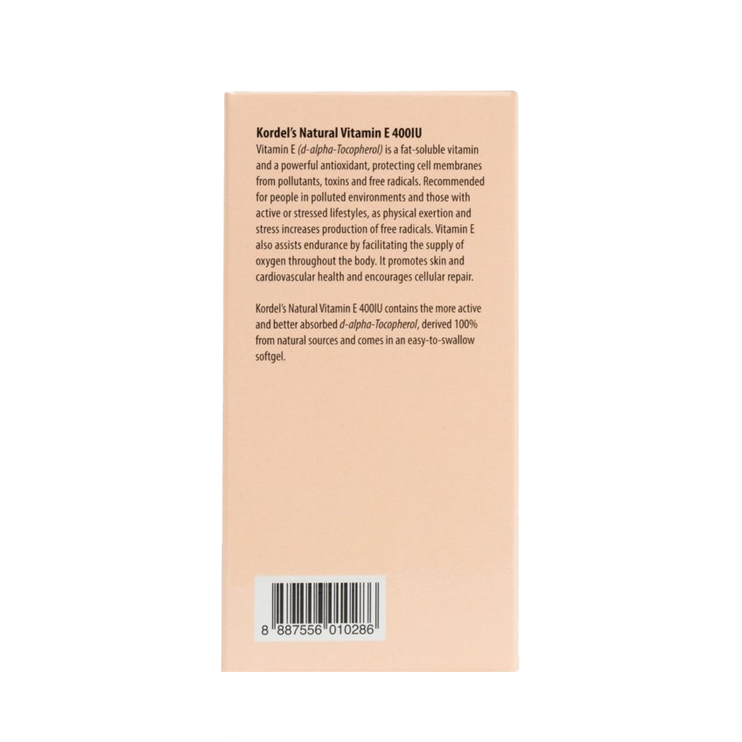 Kordel’s Natural Vitamin E 400IU provides a potent dose of d-alpha tocopherol, the natural and most bioavailable form of vitamin E. This powerful antioxidant protects cells from oxidative damage, supports skin and heart health, and promotes overall immune function. Ideal for individuals seeking anti-aging support, cardiovascular protection, and enhanced cellular vitality.