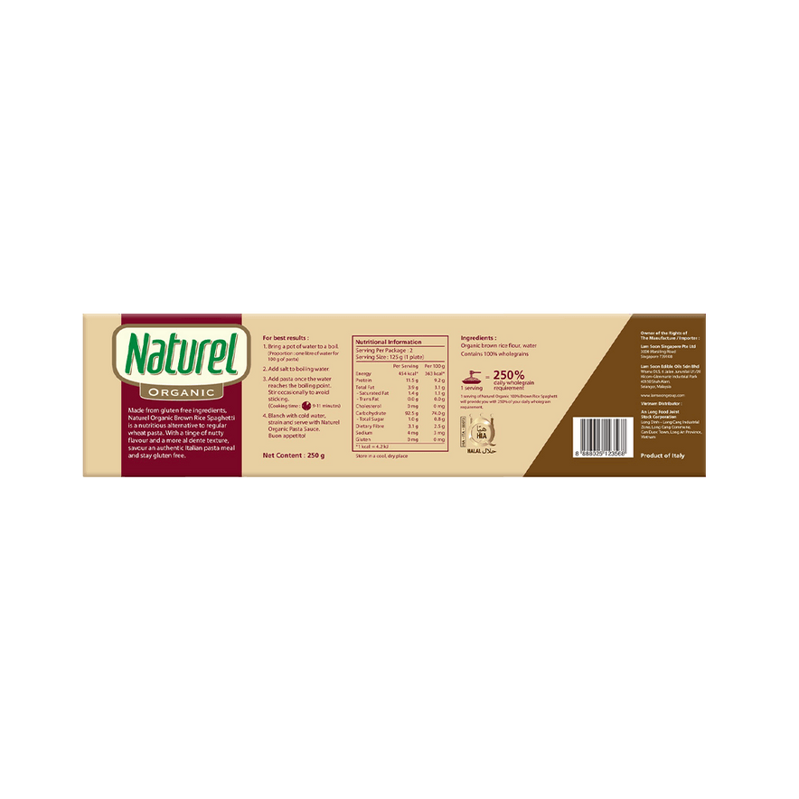 Naturel Organic Brown Rice Spaghetti is a gluten-free alternative made from organic brown rice, offering a light, nutty taste and firm texture for healthy pasta lovers.
