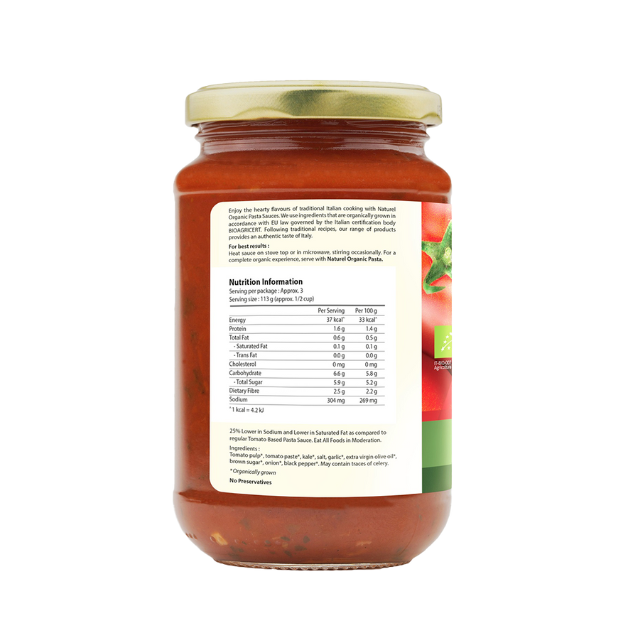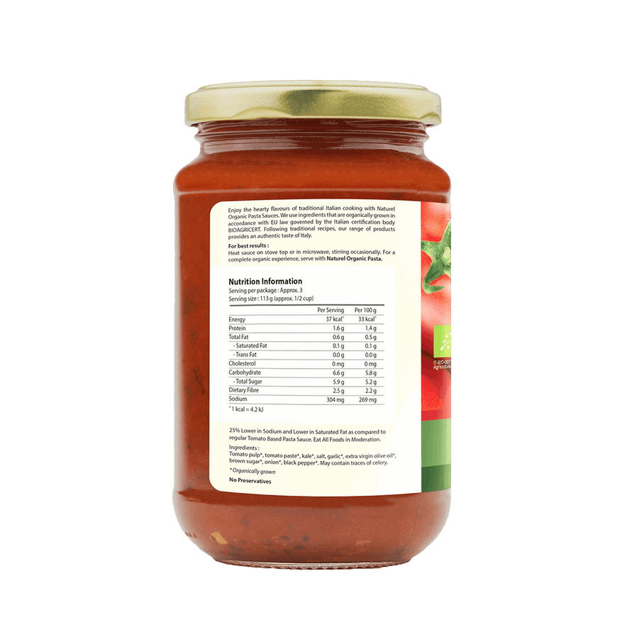 Naturel Organic Kale Pasta Sauce is a wholesome and flavourful sauce crafted with organic tomatoes, kale, and herbs for a naturally rich and earthy pasta experience. Perfect for healthy home-cooked meals.