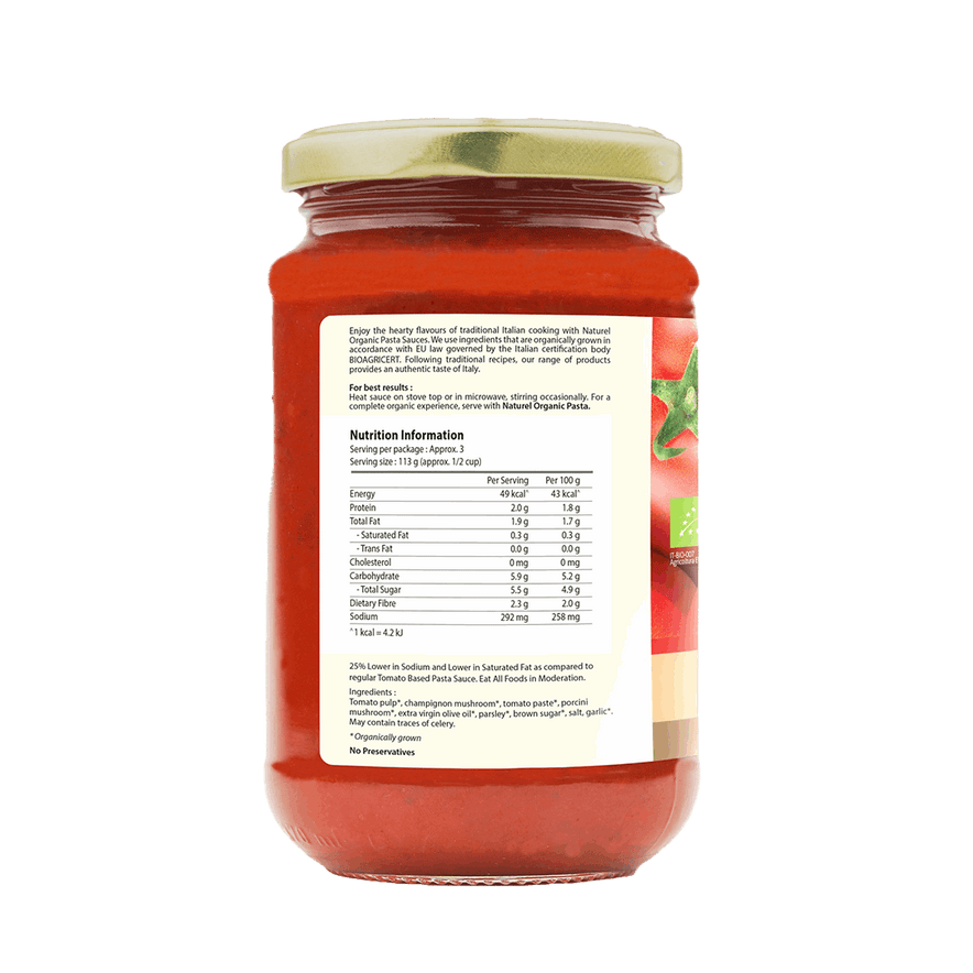 Naturel Organic Mushroom Pasta Sauce combines organic tomatoes, mushrooms, and herbs for a rich, savoury flavour. A wholesome sauce perfect for pasta, casseroles, and vegetable dishes.