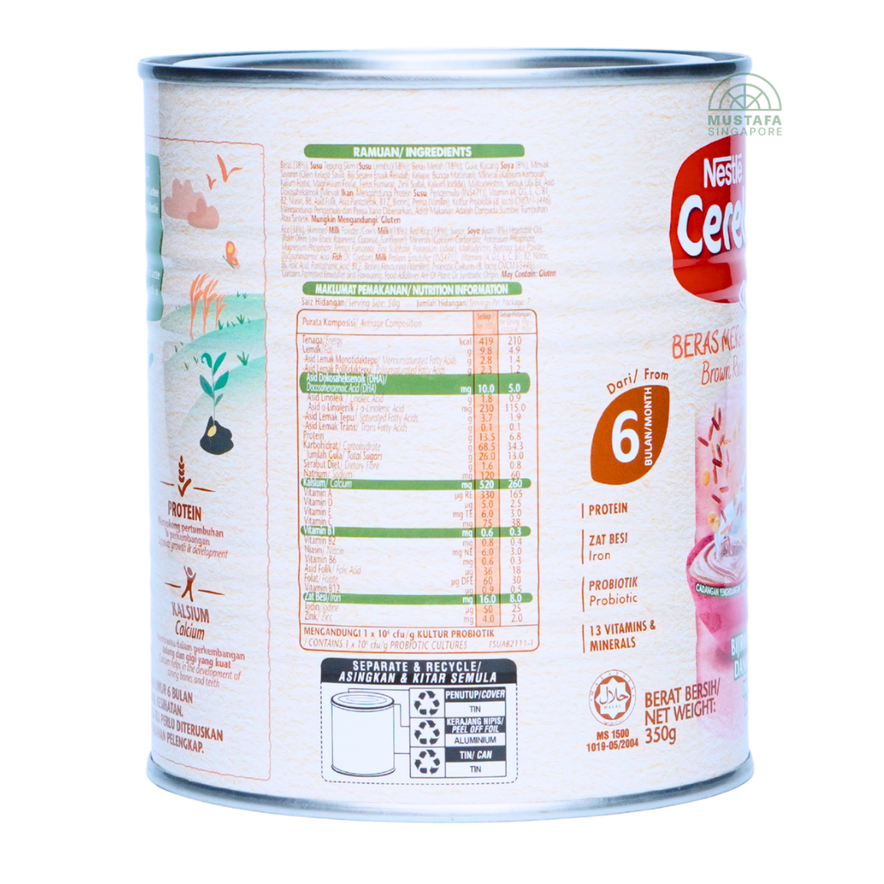 Nestlé Cerelac Brown Rice and Milk 350g combines the goodness of brown rice and milk to provide a fibre-rich, nutrient-packed cereal for babies from 6 months. It supports healthy digestion, immunity, and overall growth.