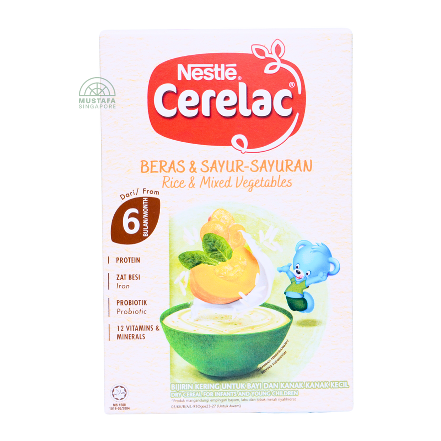 Nestlé Cerelac Rice and Mixed Vegetables 250g is a wholesome weaning cereal that blends rice with vegetable powders. Rich in vitamins and minerals, it helps support healthy growth and immunity for babies from 6 months.