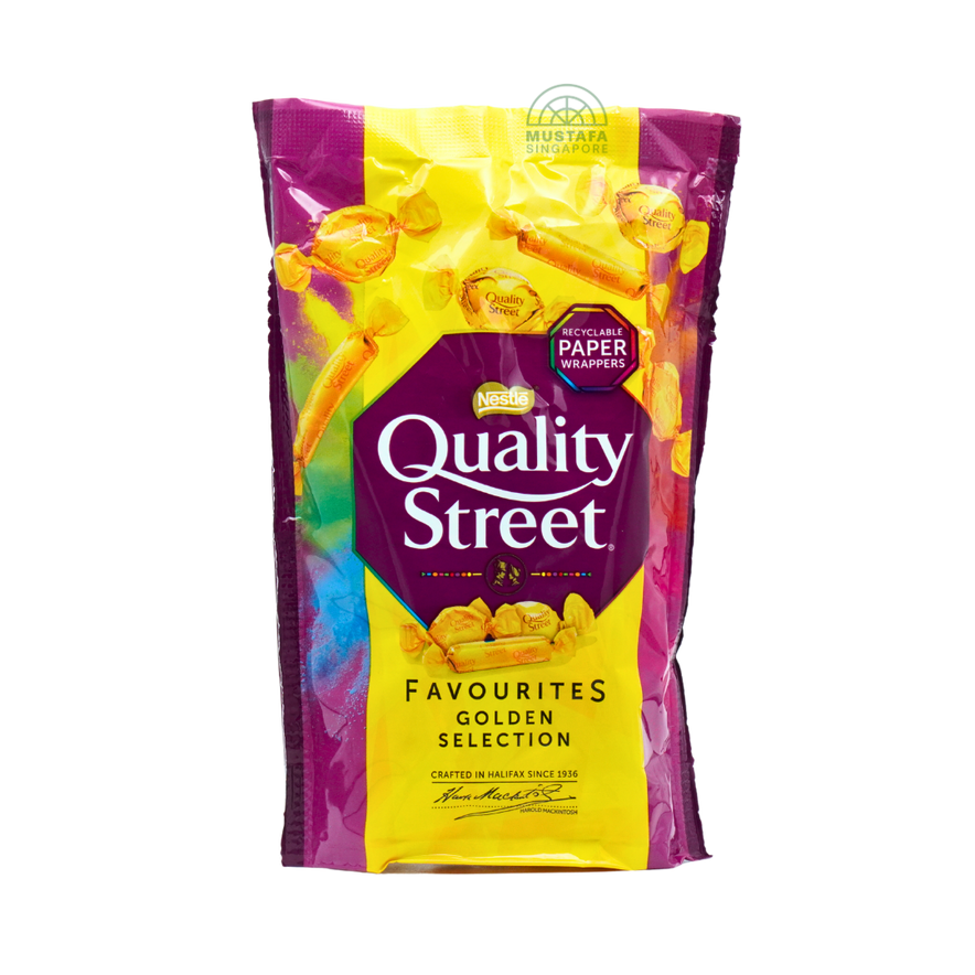 The Golden Selection features a curated mix of the most popular Quality Street pieces. Each chocolate is chosen for its premium flavour and smooth texture. Ideal for gifting, celebrating or treating yourself. The elegant gold packaging adds a luxurious touch. A refined take on the beloved Quality Street assortment.