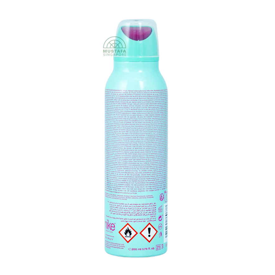 Nike A Sparkling Day 24h Woman Deodorant 200ml is a vibrant, floral-fruity fragrance crafted for the modern woman. It opens with sweet top notes of mango, mandarin orange, and black currant, evolves into a floral heart of violet, lily-of-the-valley, and orris root, and finishes with a warm base of vanilla, tonka bean, and patchouli. Designed for daily wear, it provides 24-hour freshness with an uplifting, feminine aroma.
