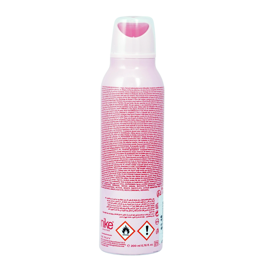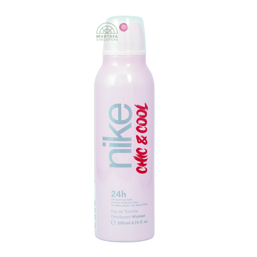Nike Chic & Cool 24h Woman Deodorant 200ml is a playful and tropical flirty fragrance. It opens with juicy top notes of banana, pineapple and green notes, flows into a heart of mango and coconut, and finishes off in a soft base of vanilla and milk. Perfect for everyday wear, it balances fruity sweetness with creamy warmth to keep you feeling fresh and feminine all day.