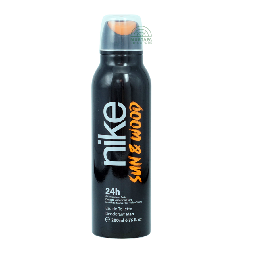Nike Sun & Wood 24h Man Deodorant 200 ml is a vibrant men's body spray that blends tropical and woody accords. The scent opens with energetic fruity notes like mango and passionfruit, transitions into a softer floral-fruit heart with lily and peach, and settles into a warm base of amber, musk, sandalwood and vanilla. Designed for daily wear, it offers long-lasting freshness with a memorable tropical woody character.