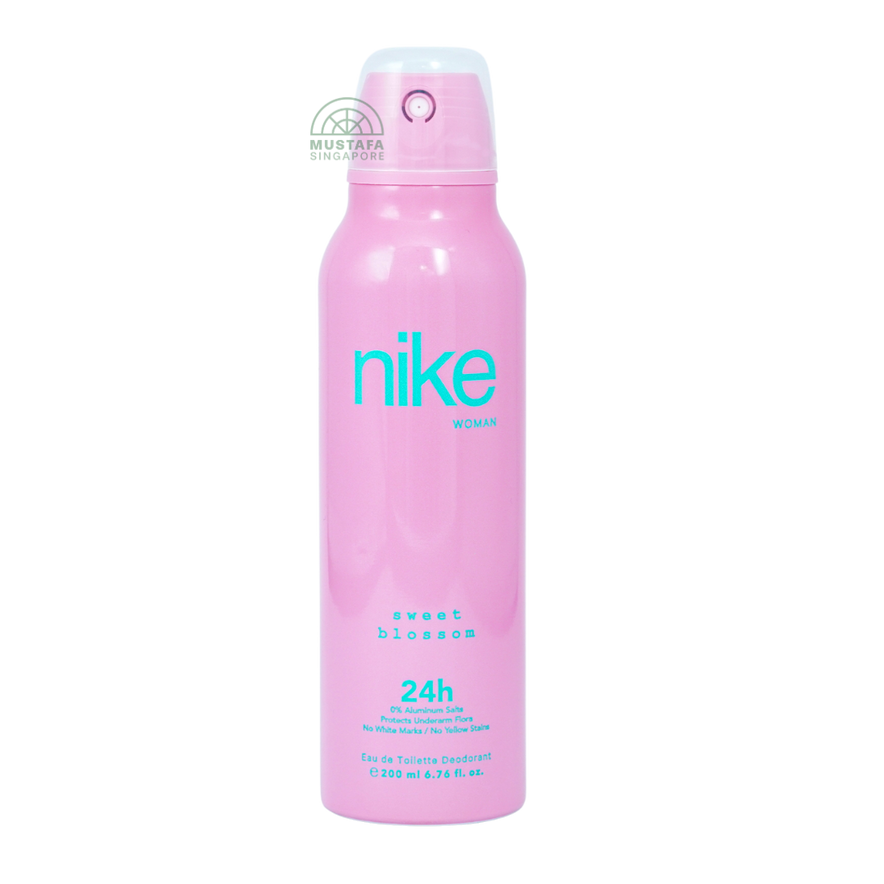 Nike Sweet Blossom 24h Woman Deodorant 200 ml is a floral-fruity fragrance designed for the modern woman. It opens with bright top notes of black currant, red berries, rose, and ylang-ylang, evolves into a heart of white flowers, almond, peach and heliotrope, and settles into a warm base of musk, vanilla, amber and cedar. With its sweet, romantic profile, it's meant to deliver freshness and charm all day long.