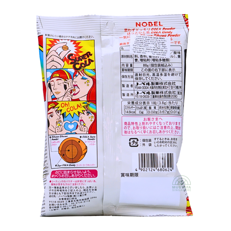 Now part of the iconic "Super Lemon" series from Nobel, the Cola variant brings a fizzy, three-stage taste adventure. Each candy starts with a tangy sour powder coating, gives way to a sweet cola shell, and ends with an effervescent sherbet-like center-creating a thrilling trio of flavors in every bite