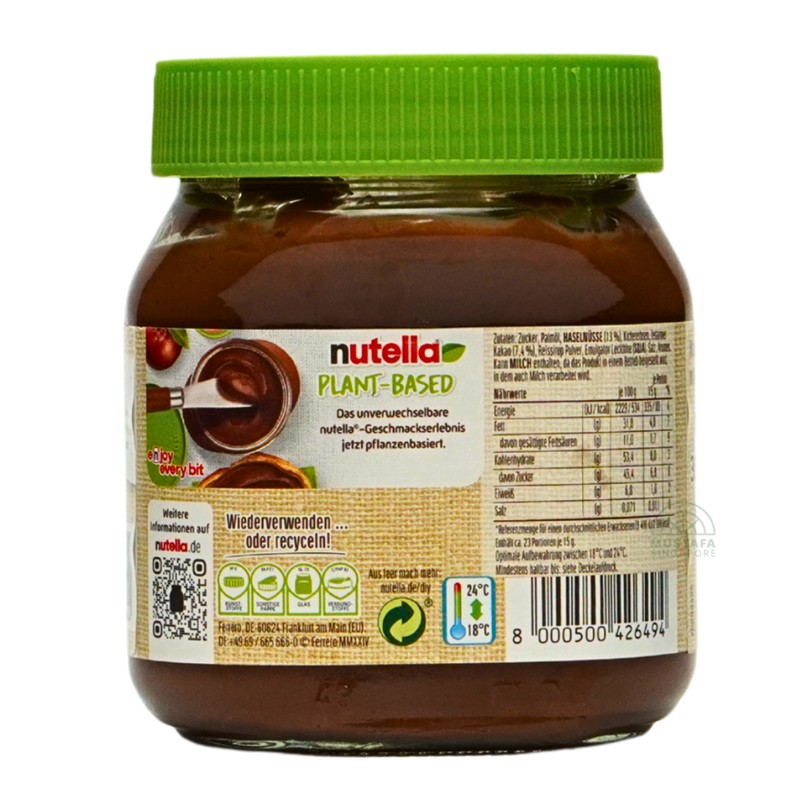 Nutella® Plant-Based delivers the iconic chocolate-hazelnut taste you know and love-now completely dairy-free and vegan-certified. Crafted with roasted hazelnuts, rich cocoa, and natural plant-based ingredients like chickpeas and rice syrup, this 350 g jar offers a velvety, creamy texture and the same signature flavor-without milk powder or animal derivatives