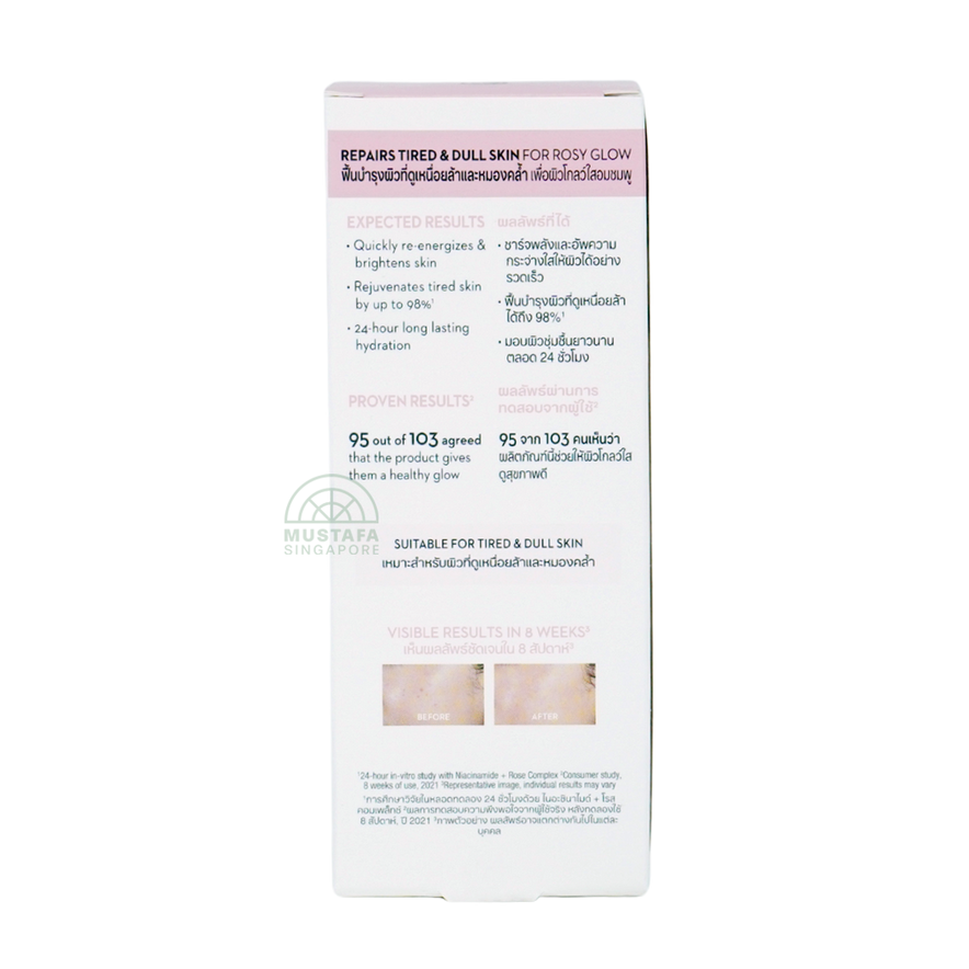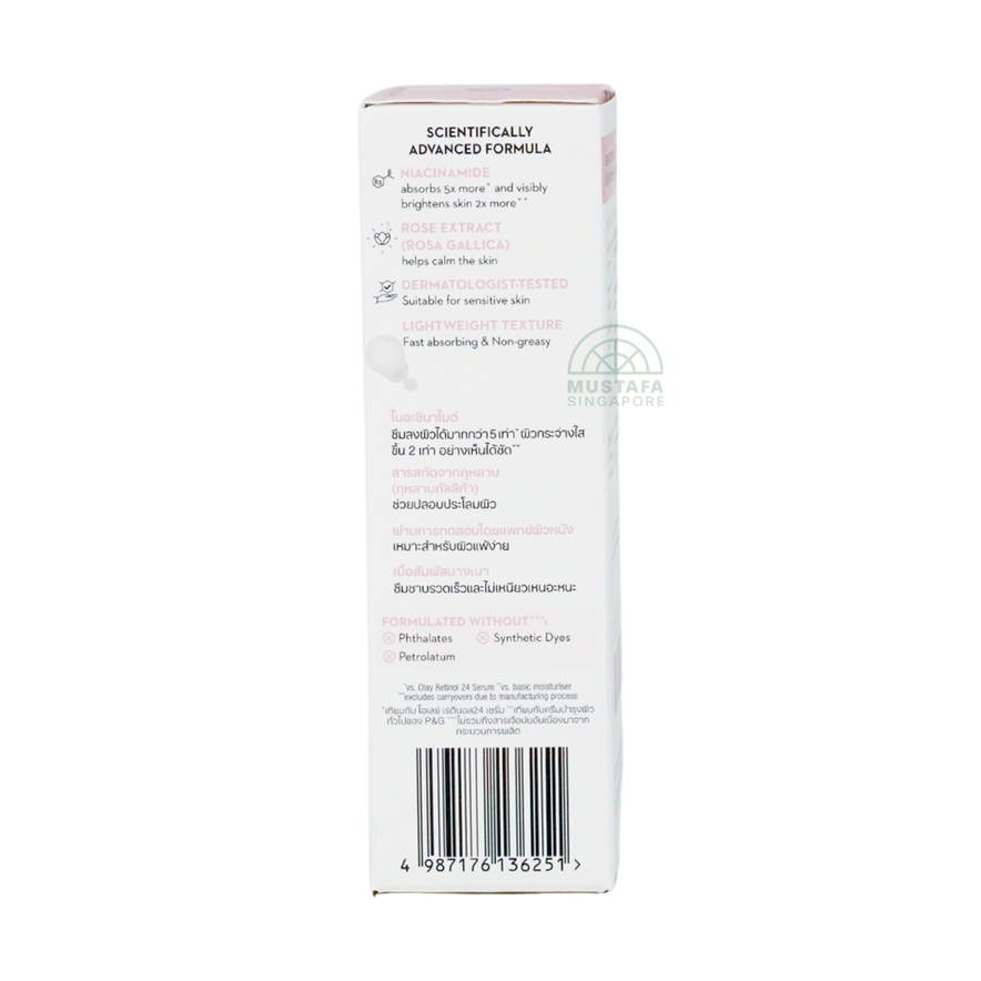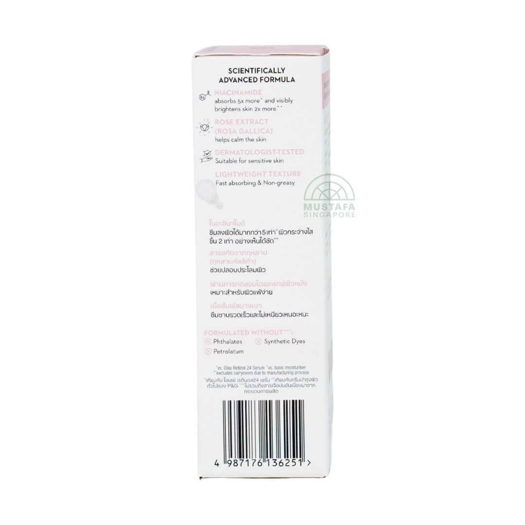 Water, Glycerin, Dimethicone, Niacinamide, Lactic Acid, Polyacrylate Crosspolymer-6, Sodium Lactate, Panthenol, PEG-11 Methyl Ether Dimethicone, Fragrance, Sodium Benzoate, T-Butyl Alcohol, Trehalose, Propylene Glycol, Rosa Gallica Flower Extract, Palmitoyl Pentapeptide-4