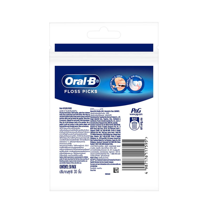 Oral-B Floss Picks (30 Count) make flossing simple, quick, and effective. With tension-control technology and shred-resistant nylon floss, they glide smoothly between tight teeth and beneath the gumline to gently remove plaque and debris. The built-in pick on each end helps reach under tight contact points with ease. Compact, mint-flavored, and clinician-tested, these floss picks deliver fresh, healthier gums as part of your daily oral routine.