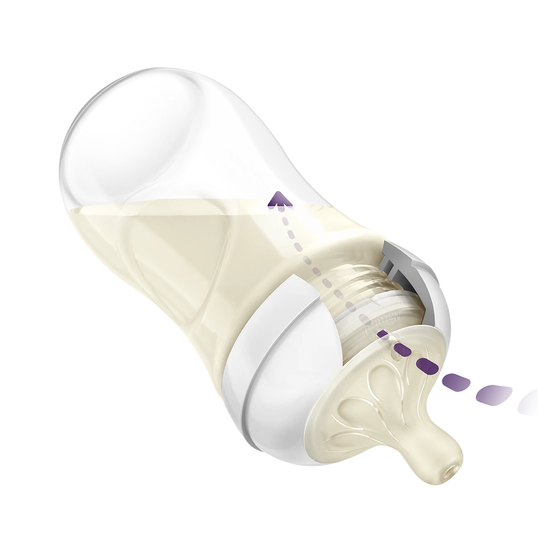 The Philips Avent 1m+ Natural Response Baby Bottle (Blue) 260ml is designed to support easy combination feeding. The Natural Response teat releases milk only when your baby actively drinks, pausing as they swallow or breathe. This helps babies control their own feeding rhythm just like at the breast. Featuring a wide, breast-shaped teat, it supports a natural latch, while the built-in anti-colic valve helps reduce air ingestion and discomfort. Its no-drip nipple prevents spills, keeping feeding clean and stress-free. Made from BPA-free polypropylene with a soft silicone teat, the bottle is lightweight, ergonomic, and easy to clean with its wide neck and simple design.