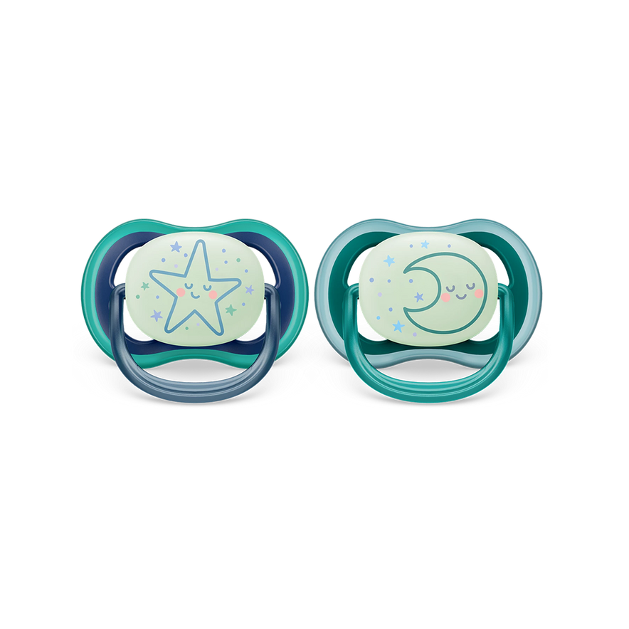 Philips Avent Soother Ultra Air Nighttime 6-18 months x 2s (Green & Blue)