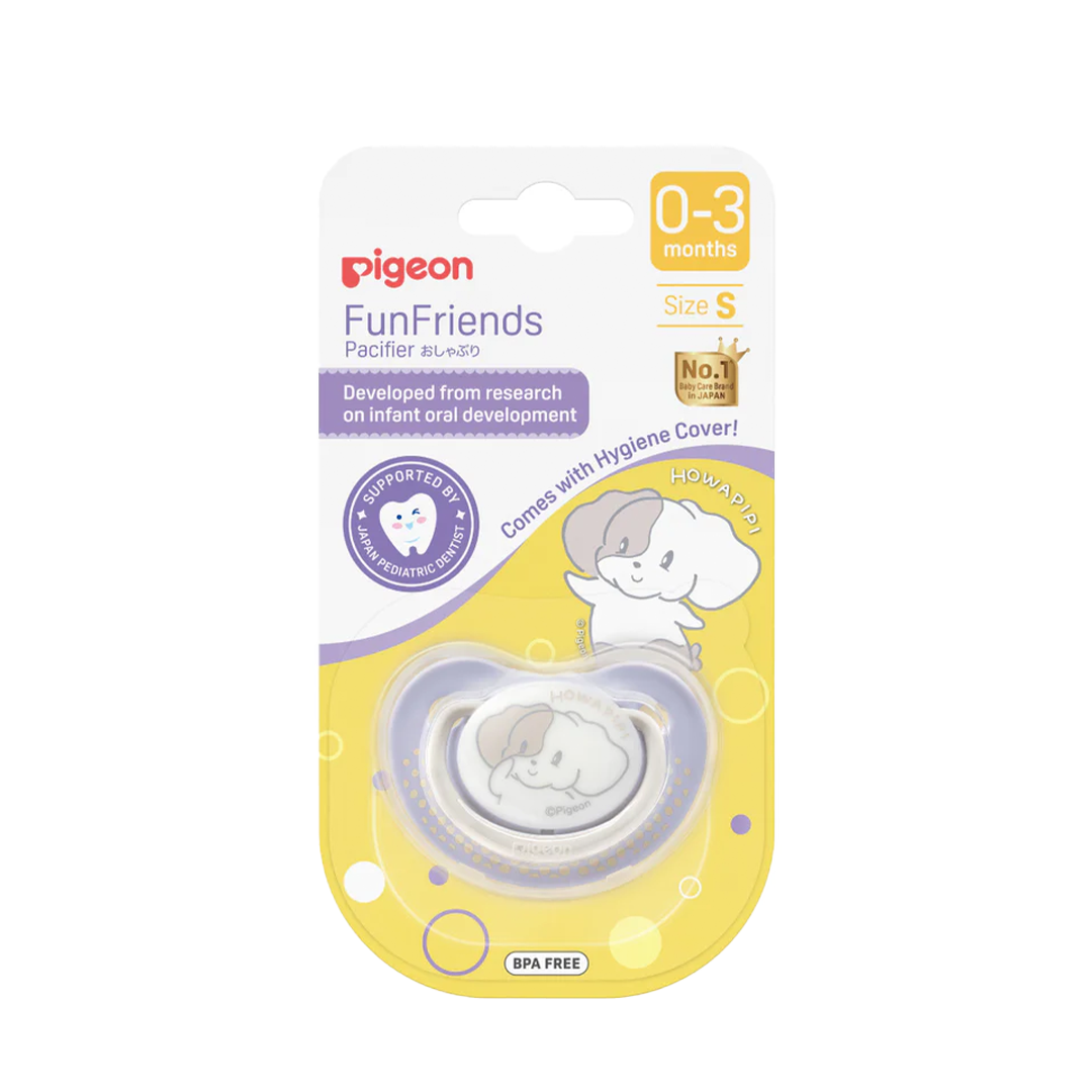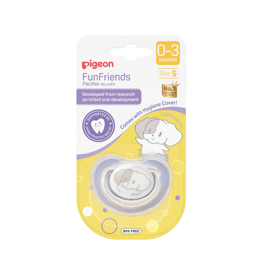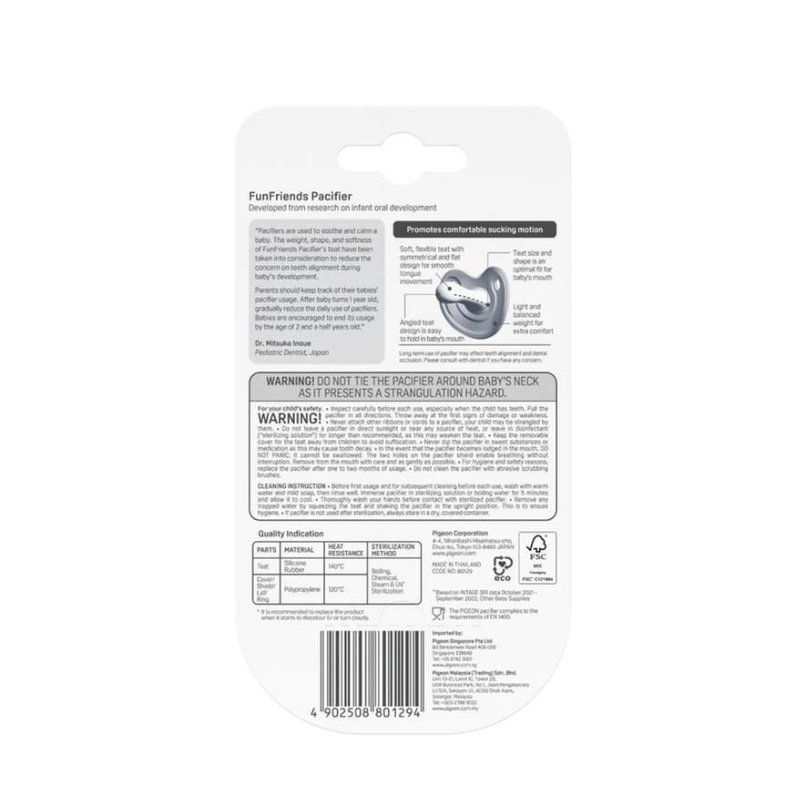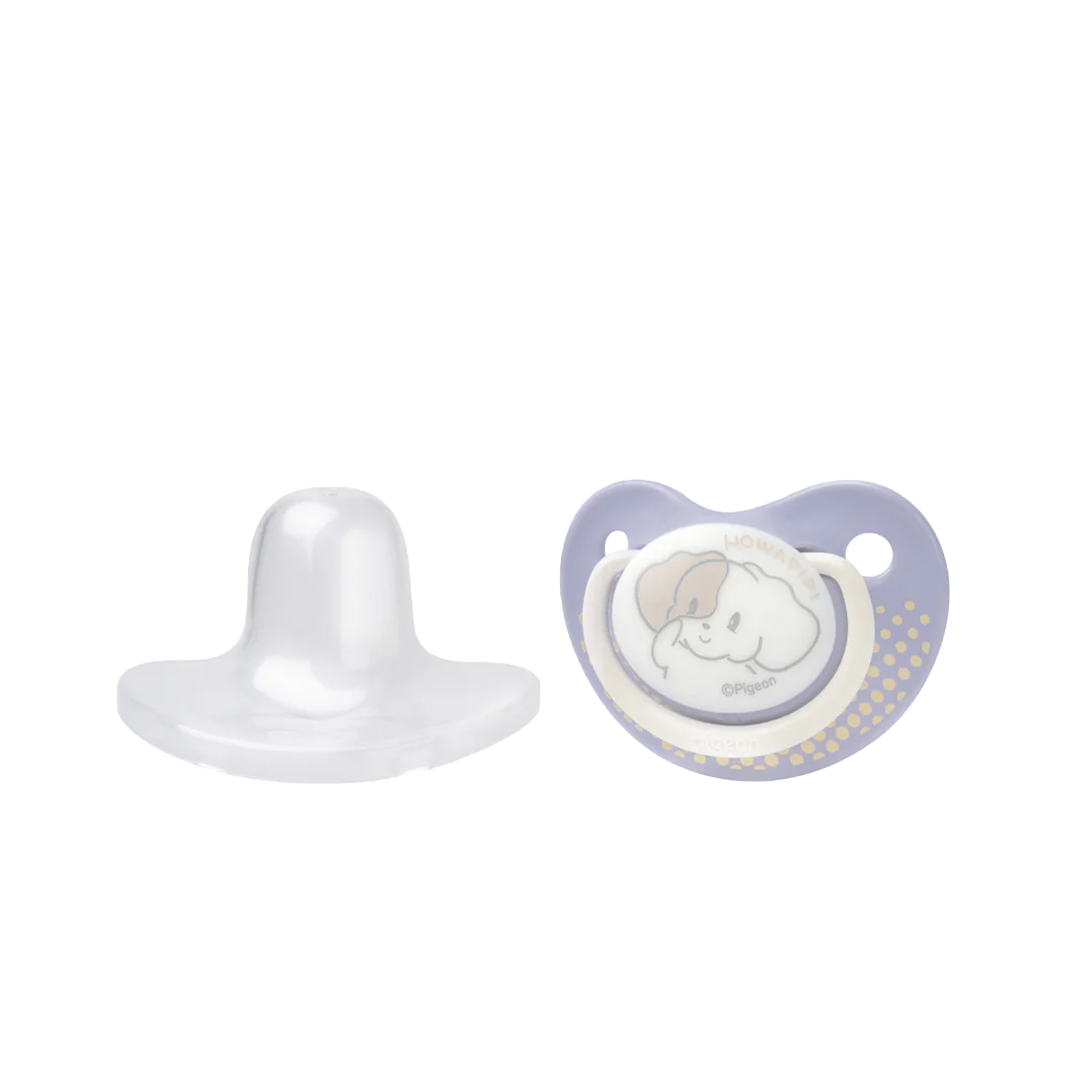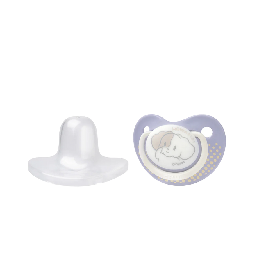 Soothe your baby with the Pigeon pacifier. The orthodontic silicone teat supports healthy oral development and ventilation holes reduce skin irritation. Fun character designs make comfort time cheerful. Choose the size that suits your baby's age.