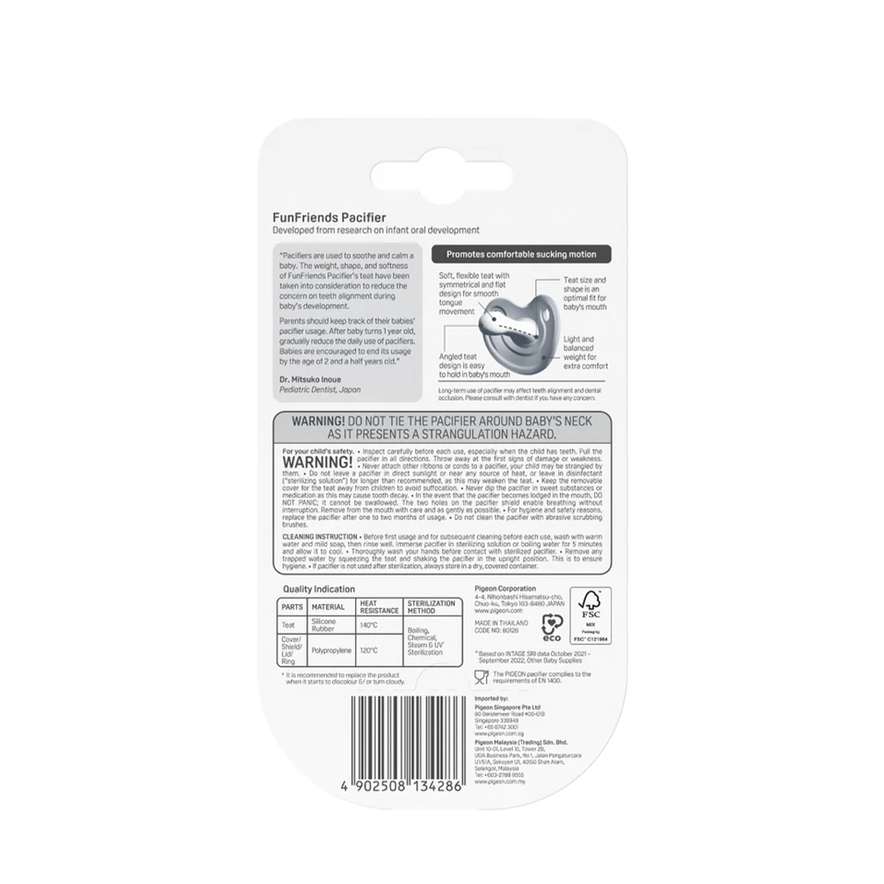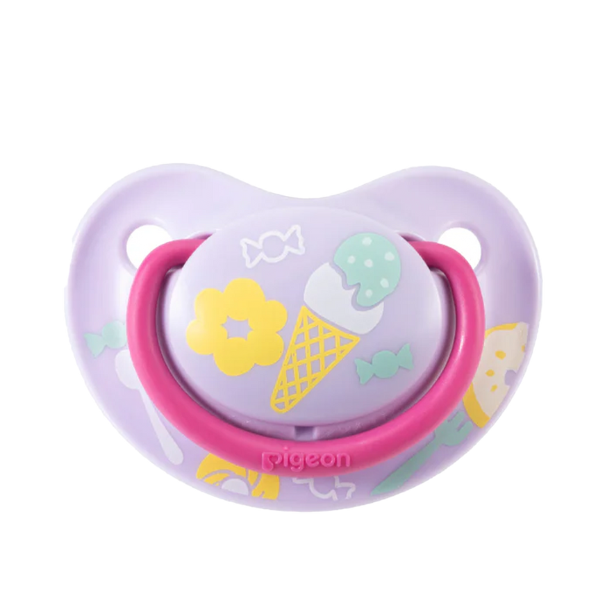 Soothe your baby with the Pigeon pacifier. The orthodontic silicone teat supports healthy oral development and ventilation holes reduce skin irritation. Fun character designs make comfort time cheerful. Choose the size that suits your baby's age.
