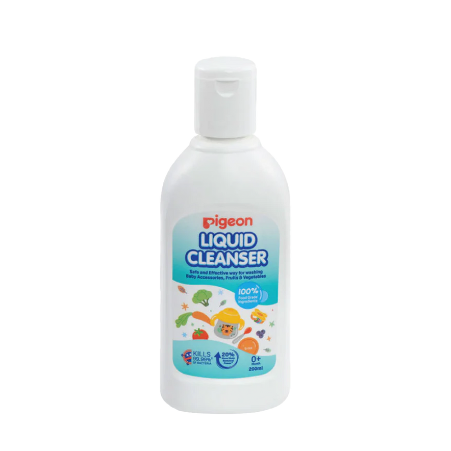 Pigeon Liquid Cleanser uses 100% food-grade ingredients to remove milk grease, food residue and pesticides from bottles, nipples, toys and produce. It cleans effectively yet rinses off completely, and is available in regular or refreshing yuzu scent.