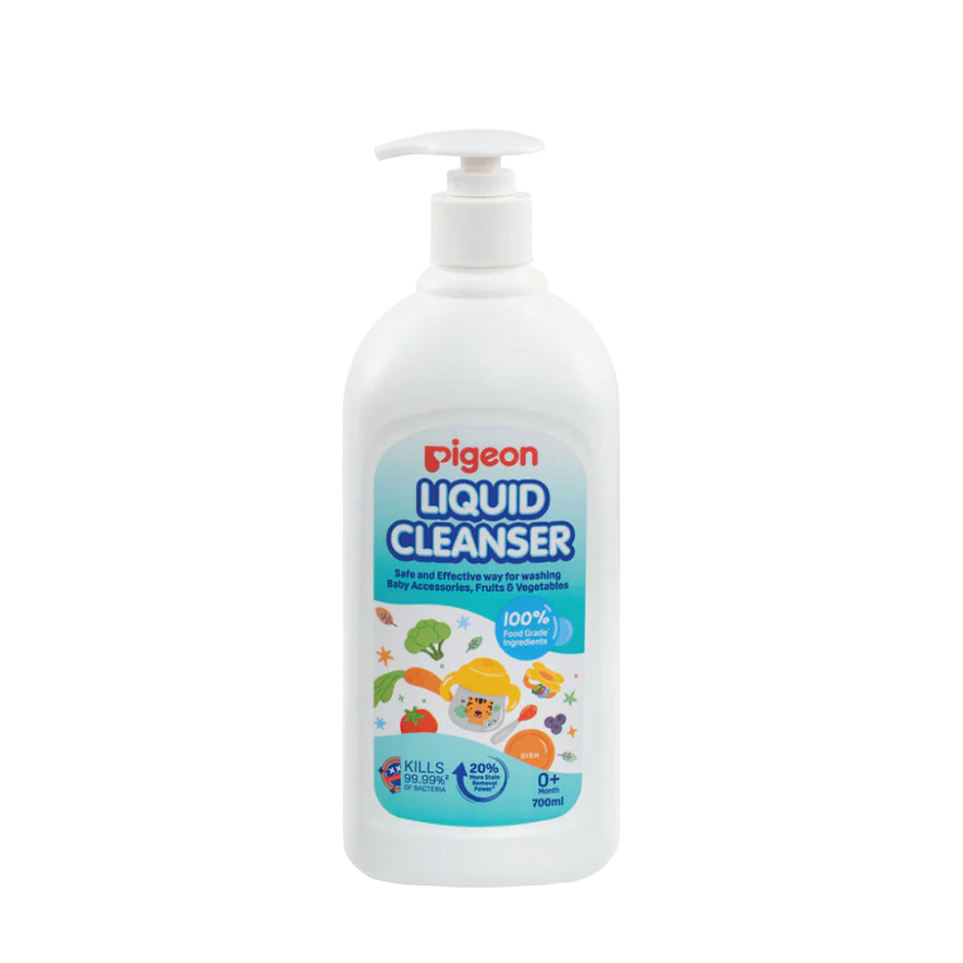 Pigeon Liquid Cleanser uses 100% food-grade ingredients to remove milk grease, food residue and pesticides from bottles, nipples, toys and produce. It cleans effectively yet rinses off completely, and is available in regular or refreshing yuzu scent.