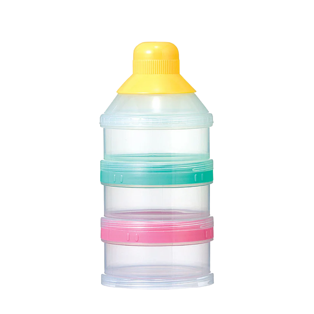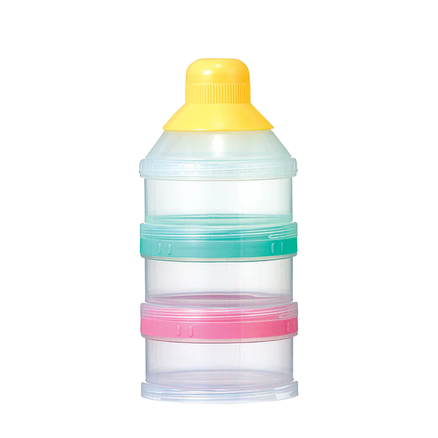 Measure and carry formula easily with the Pigeon milk powder container. Three stackable compartments store pre-measured powder or snacks for mess-free feeding on the go, and the twist-open lids prevent spills.