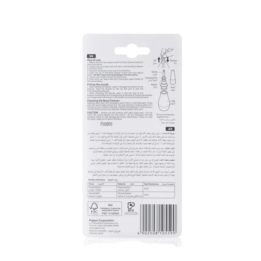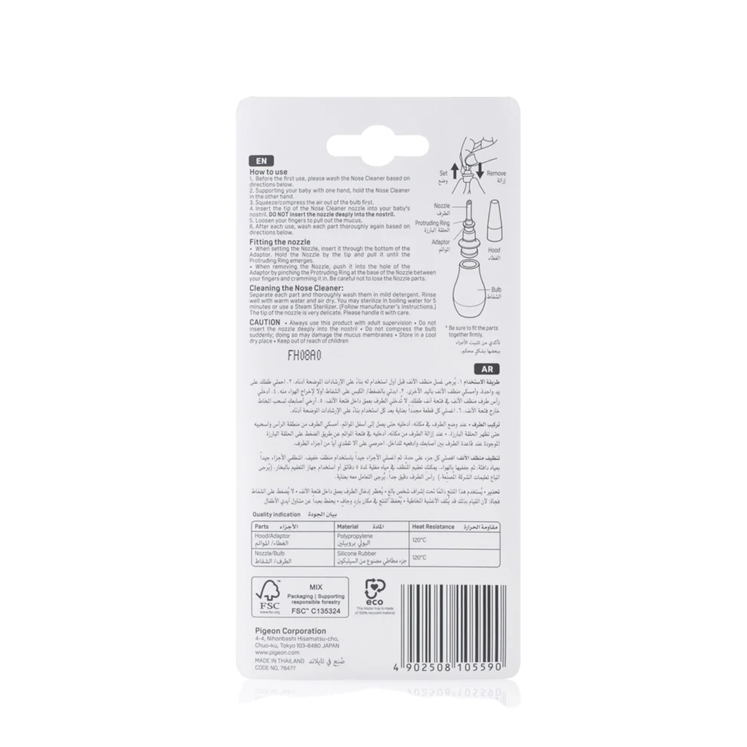 Relieve stuffiness with the Pigeon nose cleaner. The soft silicone nozzle and gentle suction help clear your baby's nasal passages comfortably, making breathing easier for better sleep and feeding.