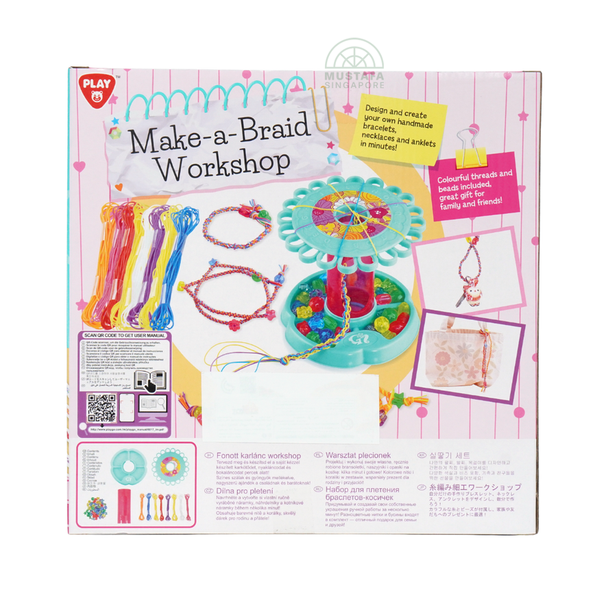 The Play Make-a-Braid Workshop teaches kids how to create colourful braided strands with hands-on tools. Children can mix colours, choose patterns and produce custom braids for accessories. The activity develops hand coordination and pattern-making skills. A delightful workshop kit for craft-loving children.
