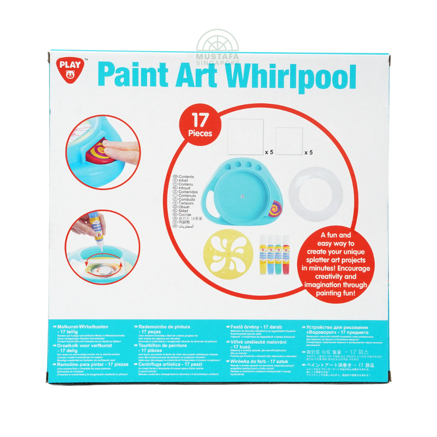 The Play Paint Art Whirlpool set provides a spinning art experience where kids can create vibrant swirl paintings. By adding paint and activating the spinner manually, children can produce colourful abstract patterns. This hands-on activity encourages creativity and experimentation. A fun artistic kit for expressive young creators.