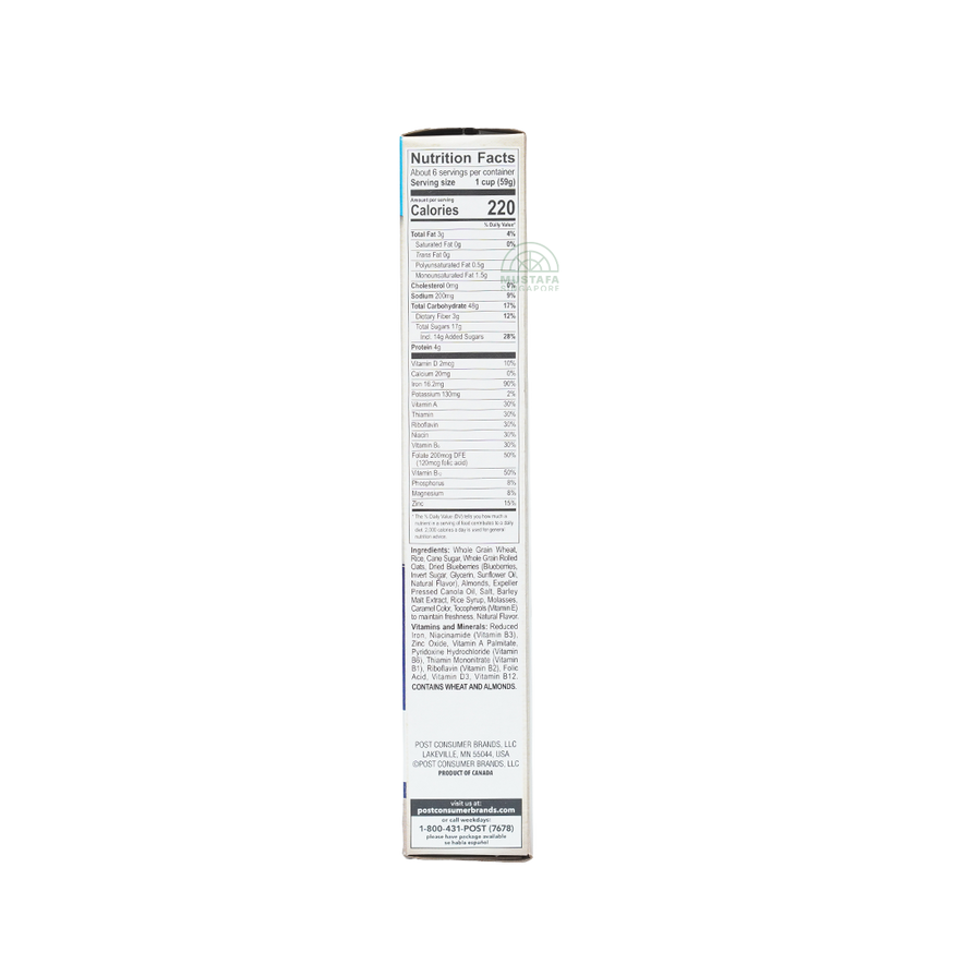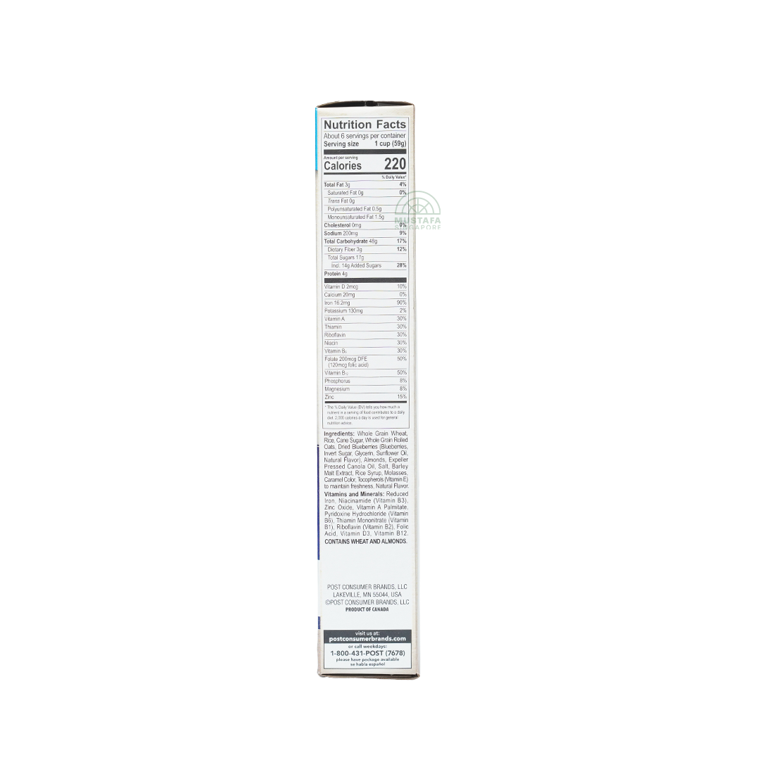 Post Blueberry Morning cereal is a premium blend of crunchy oat flakes, crispy clusters, and real blueberries. With its burst of fruity sweetness and rich fiber content, it's a nourishing breakfast choice.