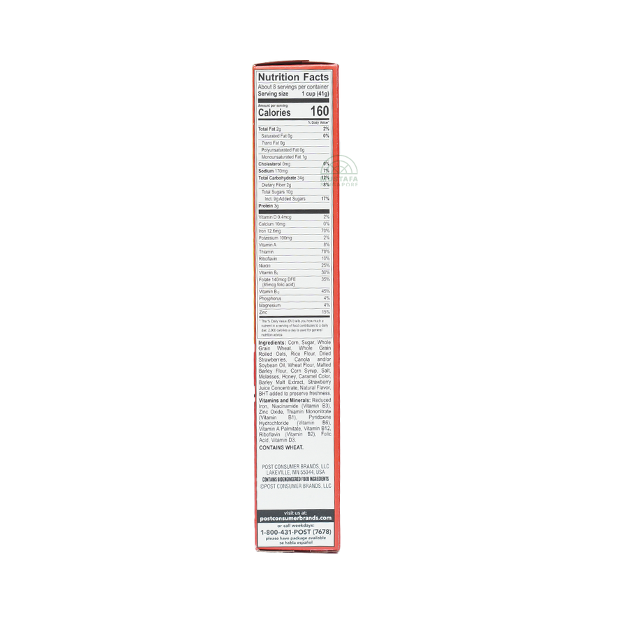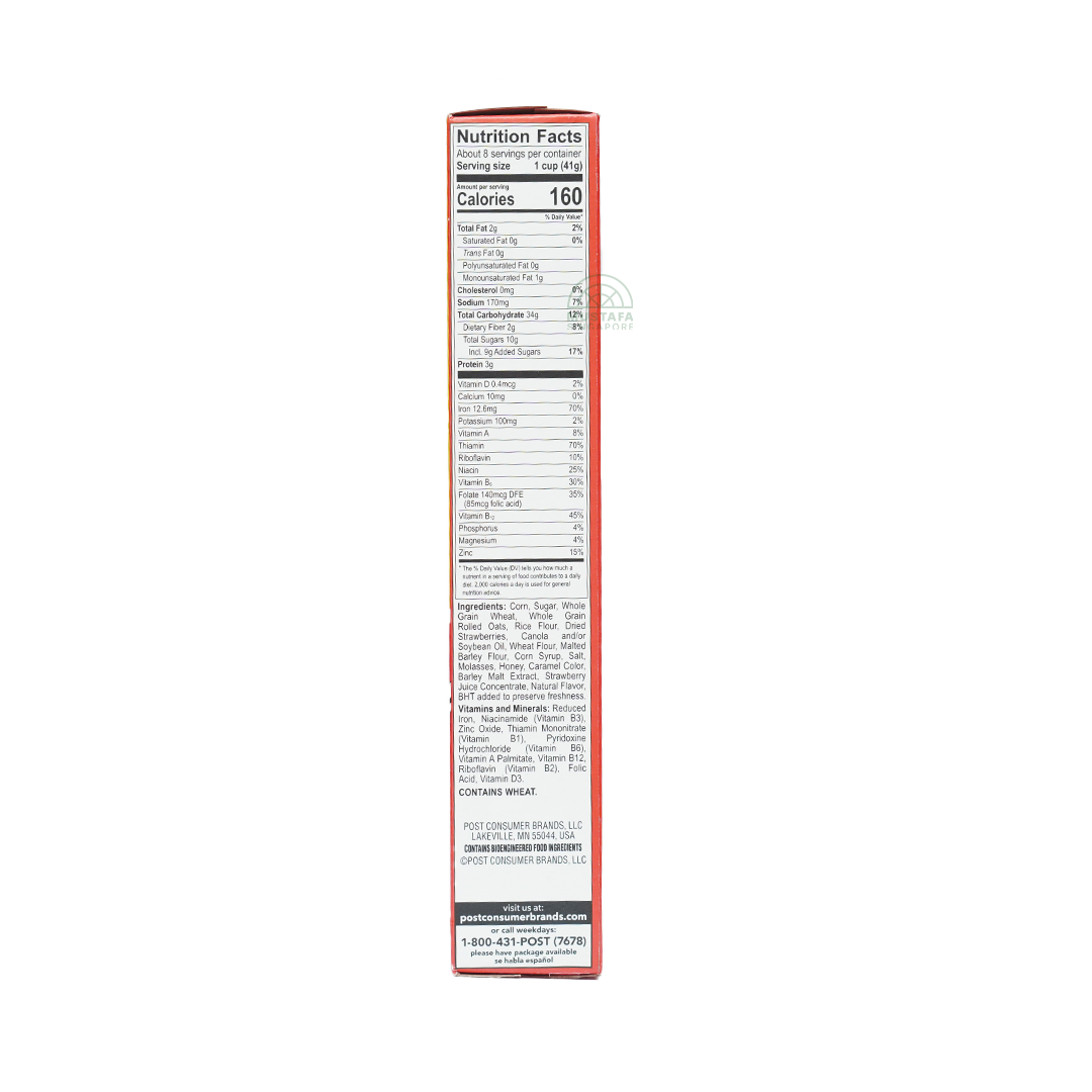 Corn, Whole Grain Oats, Sugar, Strawberries, Rice, Wheat, Almonds, Honey, Salt, Natural Flavour.