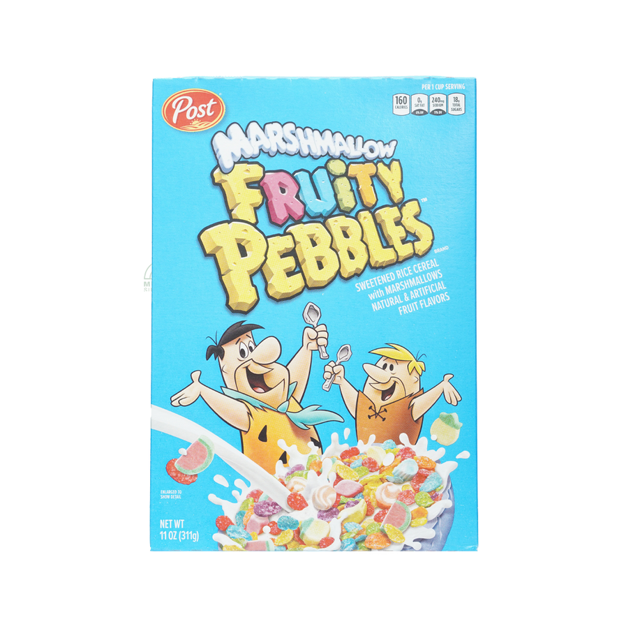 Post Marshmallow Fruity Pebbles adds soft, sweet marshmallows to the classic fruity cereal for a fun, colorful breakfast that's perfect for kids and the young at heart.