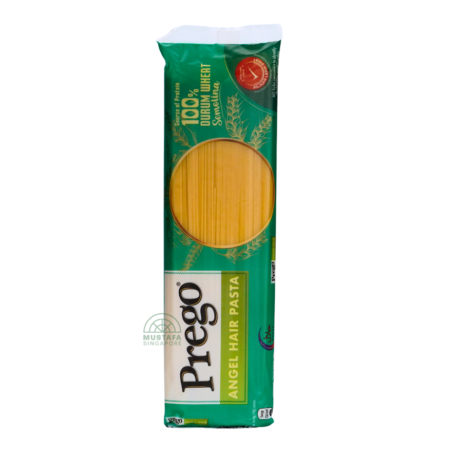 Discover the delicate elegance of Prego Angel Hair Pasta, crafted from 100% durum wheat semolina. Made in Turkey and HALAL-certified, this ultra-fine pasta cooks in just 3–5 minutes, making it perfect for quick, elegant meals where your favourite sauce deserves to shine. It’s free from GMOs, artificial colourings, flavourings, and preservatives, offering both purity and convenience.