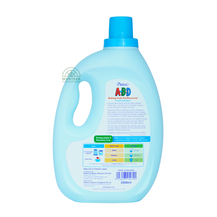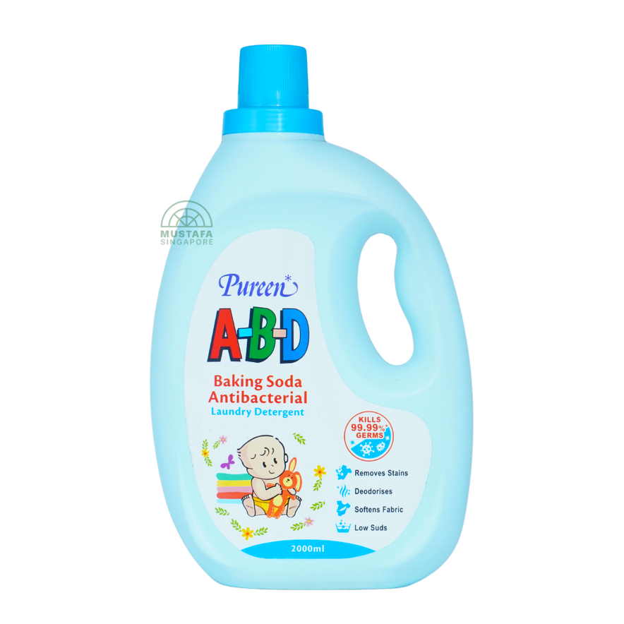 Pureen A-B-D Baking Soda Antibacterial Laundry Detergent is specially formulated for babywear, eliminating tough stains and germs while being gentle on fabrics.