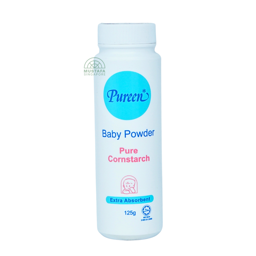 Pureen Baby Powder Pure Cornstarch Extra Absorbent 125g is specially formulated with 100 percent pure cornstarch to keep baby's skin fresh, smooth, and dry. Its natural absorbent properties help protect against excess moisture, irritation, and chafing, making it ideal for use after baths and diaper changes. With its soft, fine texture, it applies evenly and gently on delicate skin. Dermatologically tested, it is safe for daily use and free from talc, parabens, and harsh chemicals.