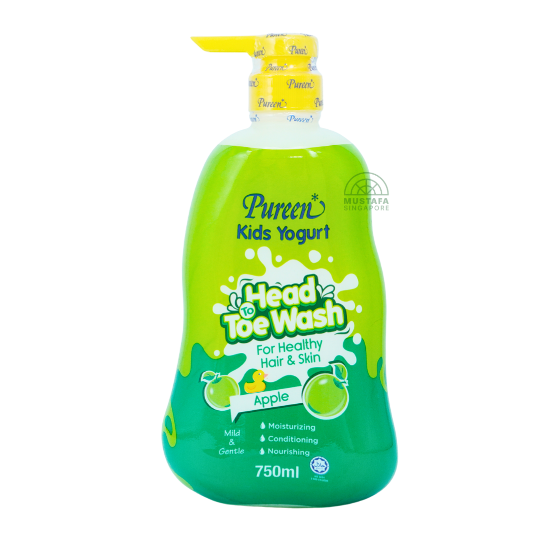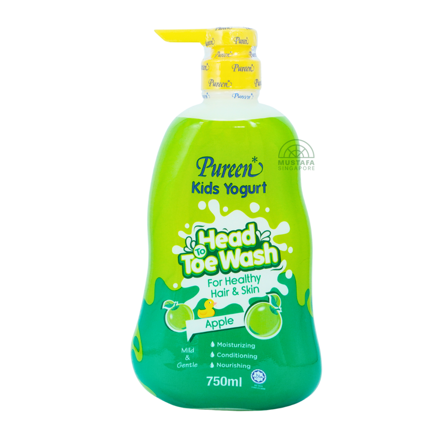 Pureen Kids Yogurt Head to Toe Wash Apple nourishes and cleanses children's hair and skin with yogurt extracts for natural softness and shine. Its fresh apple fragrance leaves kids feeling clean, refreshed, and cared for daily.