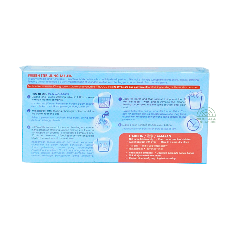 Pureen Sterilising Tablets provide a quick and convenient way to disinfect baby bottles, nipples, and accessories. Effective against harmful bacteria and safe for daily use.